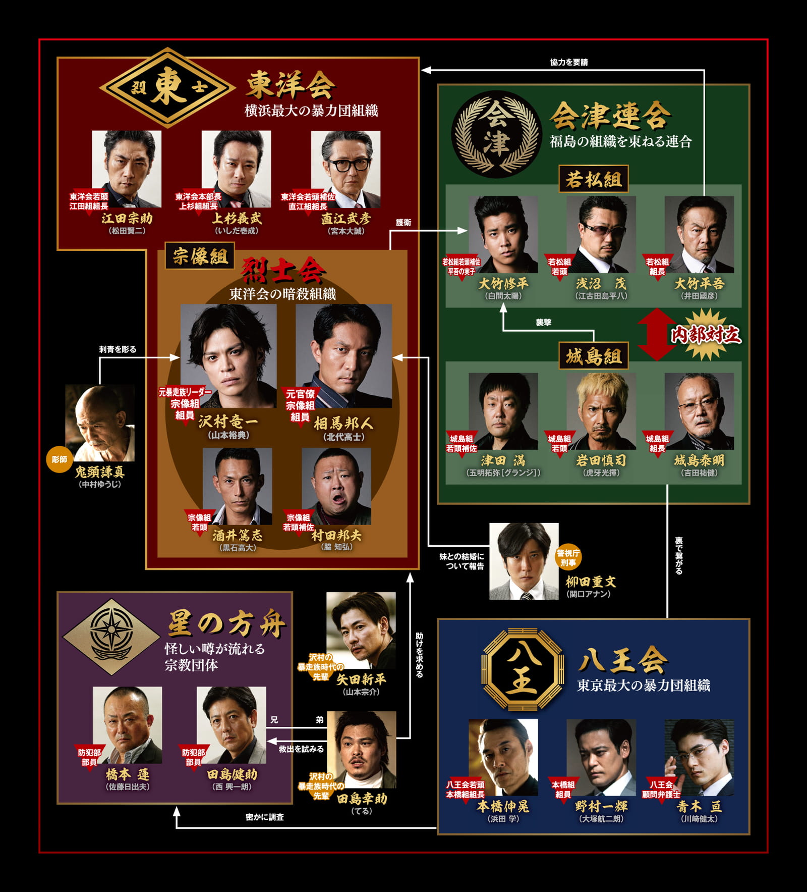 福島に拠点を置く会津連合、その連合傘下にある若松組と城島組の抗争に介入することになった東洋会。その中で沢村と相馬は、若松組組長・大竹平吾の実子であり、若さと負けん気あふれる大竹修平と出会う。年下だが組の行く末を考える修平に感化され、沢村は早くに亡くした元ヤクザの父親の覚悟と生き様に改めて気づかされる。さらに、沢村の暴走族時代の先輩・田島幸助が、怪しい噂が流れる宗教団体・星の方舟から兄を救い出そうと必死になっているのを知り、沢村と相馬は幸助の手助けをすることに。母親が星の方舟の上層部にいる相馬は、家族の問題とも向き合うことになるが…。会津連合、星の方舟、新たな勢力と強烈な個性を持つキャラクターが登場し、物語はさらにヒートアップ! 城島組若頭・岩田慎司と沢村のリアルな格闘シーンはシリーズ屈指! さらには、城島組との壮絶な銃撃戦、田島兄弟の胸に迫るドラマなど、見逃せない名場面が目白押し。シリーズの今後の方向性を決定づける重要な最新作に乞うご期待!