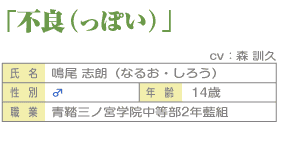 ルックスはジャニーズ系、しかもちょっとワイルド入ってる…と普通この手は無口なんだけど、オマエって意外とよく喋るよね。ところで「魚崎まこと」とはどうなのよ?うん?このヤロ!